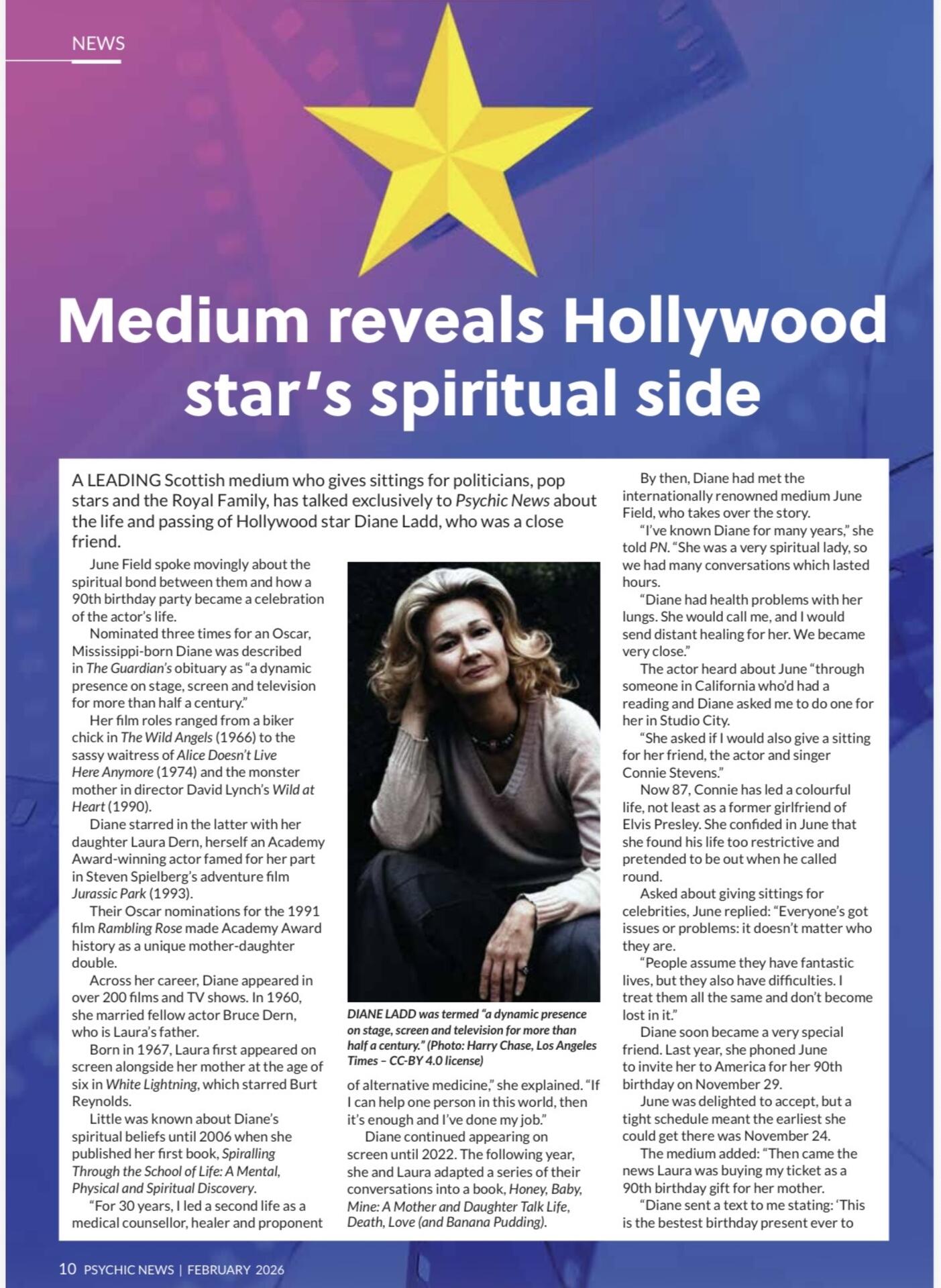 Statement from Uri Geller. “When I was judging The Battle Of The Psychics, June Field really impressed me with the level of her intuitive talents and skills. She is also a real nice person. I believe you will enjoy her presentations.” www.urigeller.com